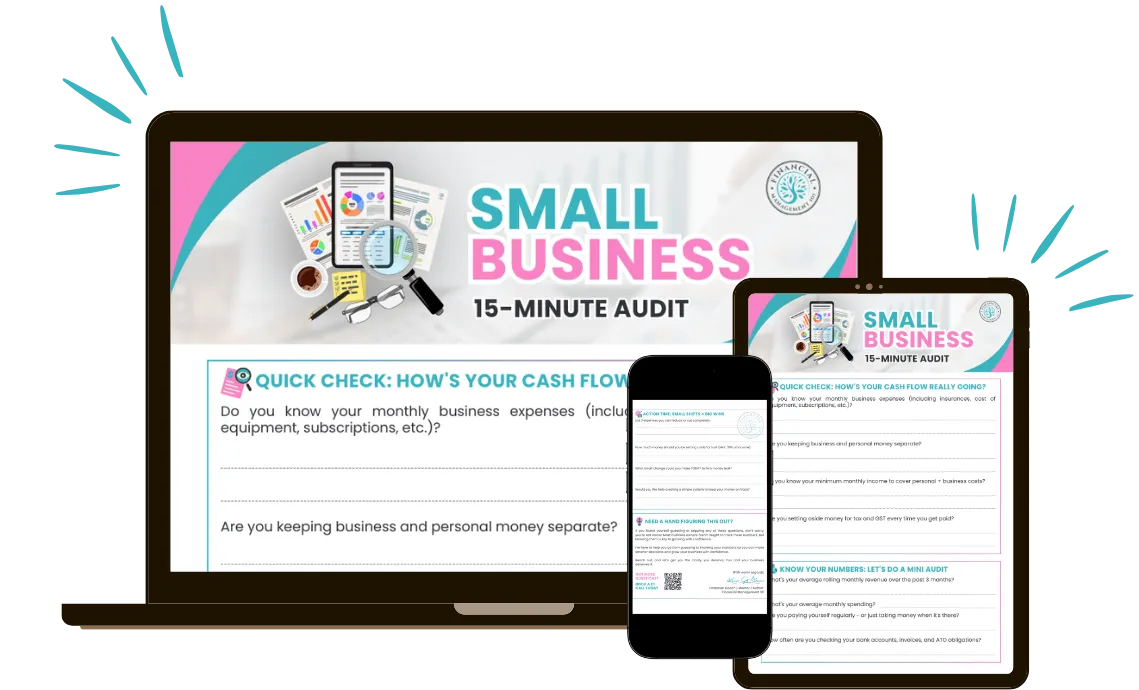 The Small Business – 15-Minute Audit is a quick, no-BS worksheet designed to help you get a clear picture of where your cash is going, what’s working, and where the leaks are.